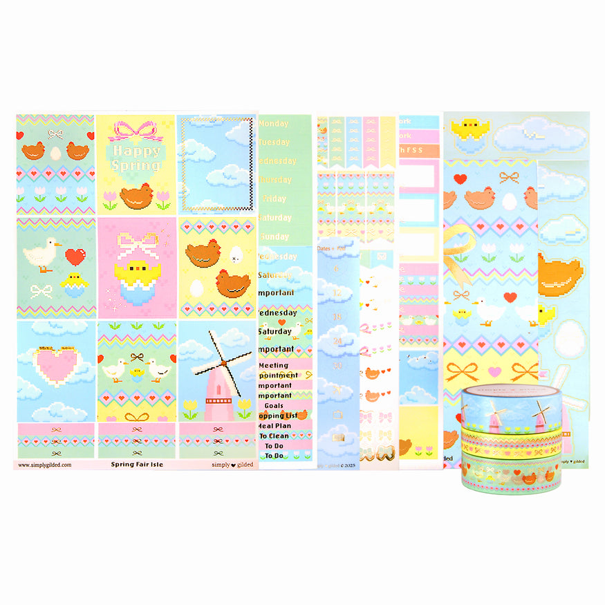 ♥ Spring Fair Isle Luxe Sticker Kit + date dots (light gold foil)