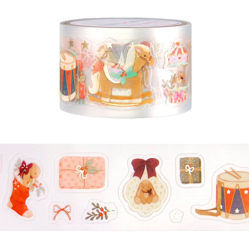 A classic design from Simply Gilded in this 30mm washi with pre-cut nostalgic items such as rocking chairs, overfilled stockings, drums, presents, stuffed rabbits with satin gold foiled accents!This set includes: ♥ Velveteen PET tape + satin gold foil - 30mm x 10m