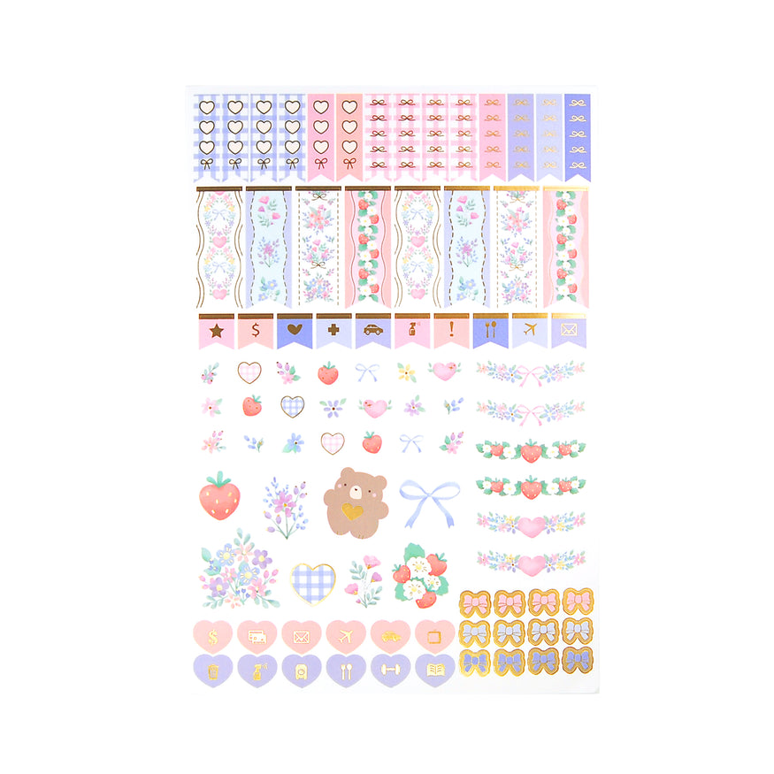 ♥ Floral Whimsy Deco Stickers + satin gold foil - clear matte