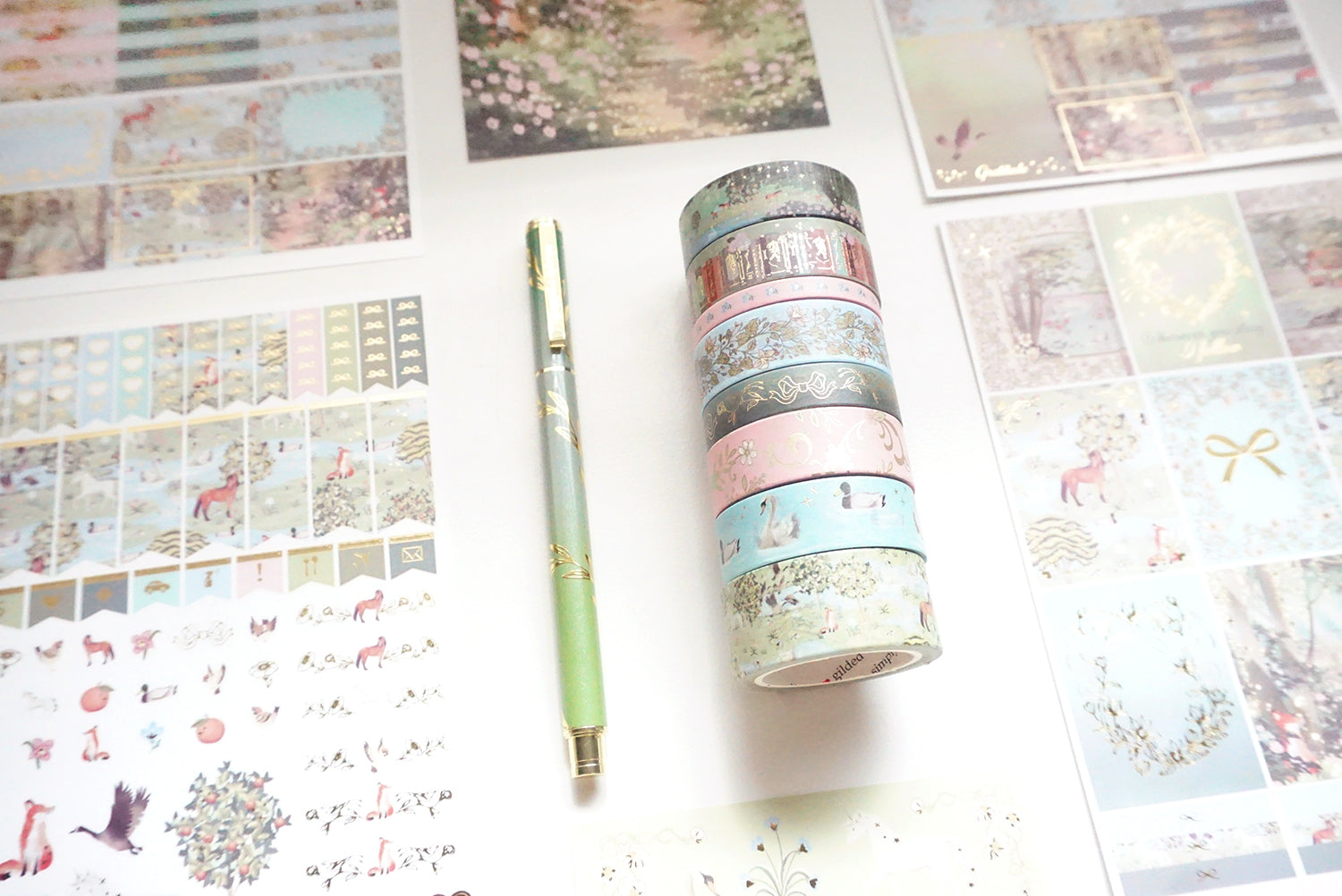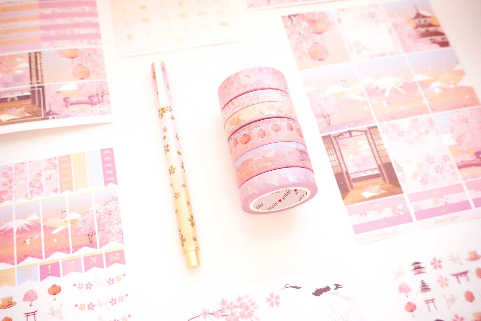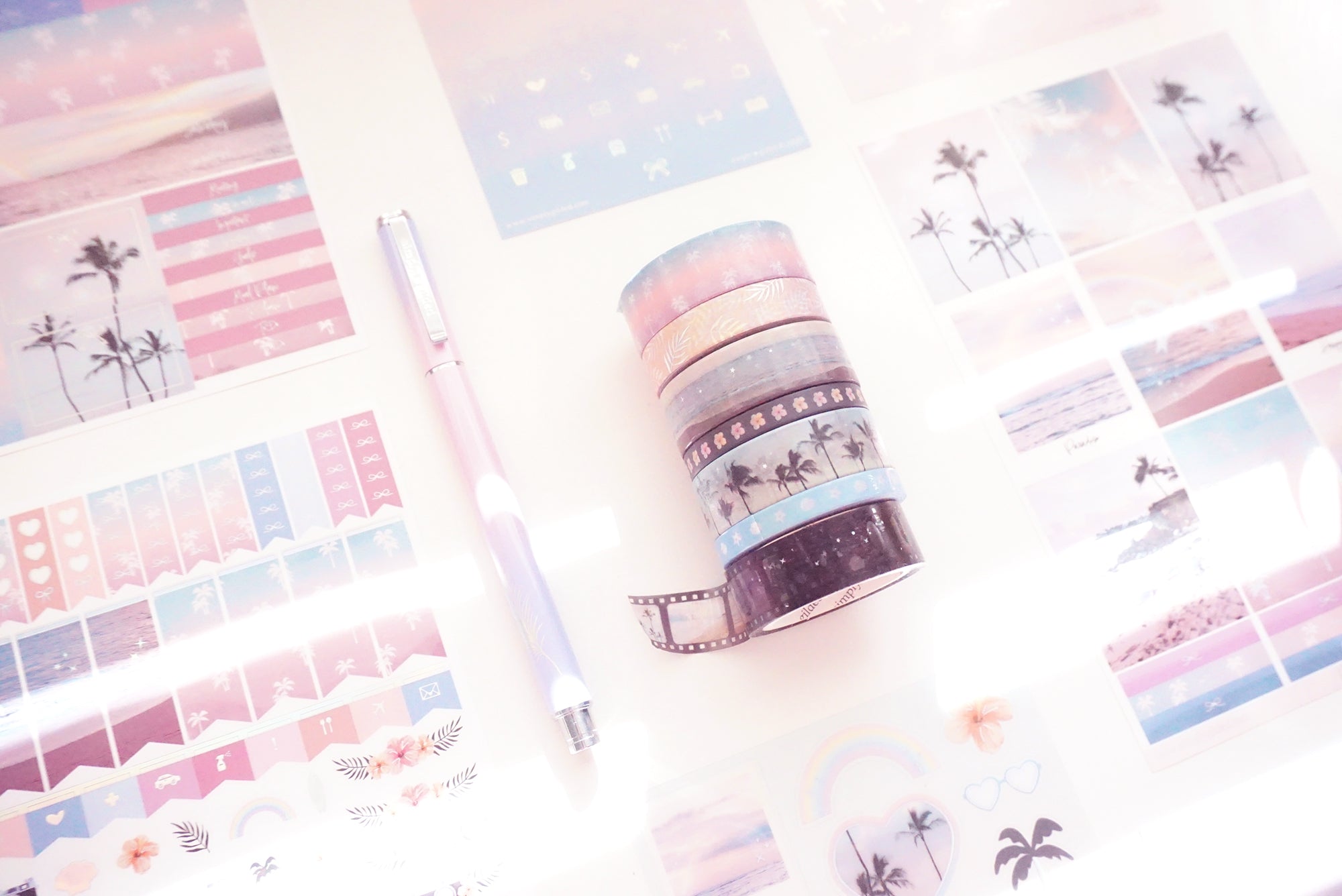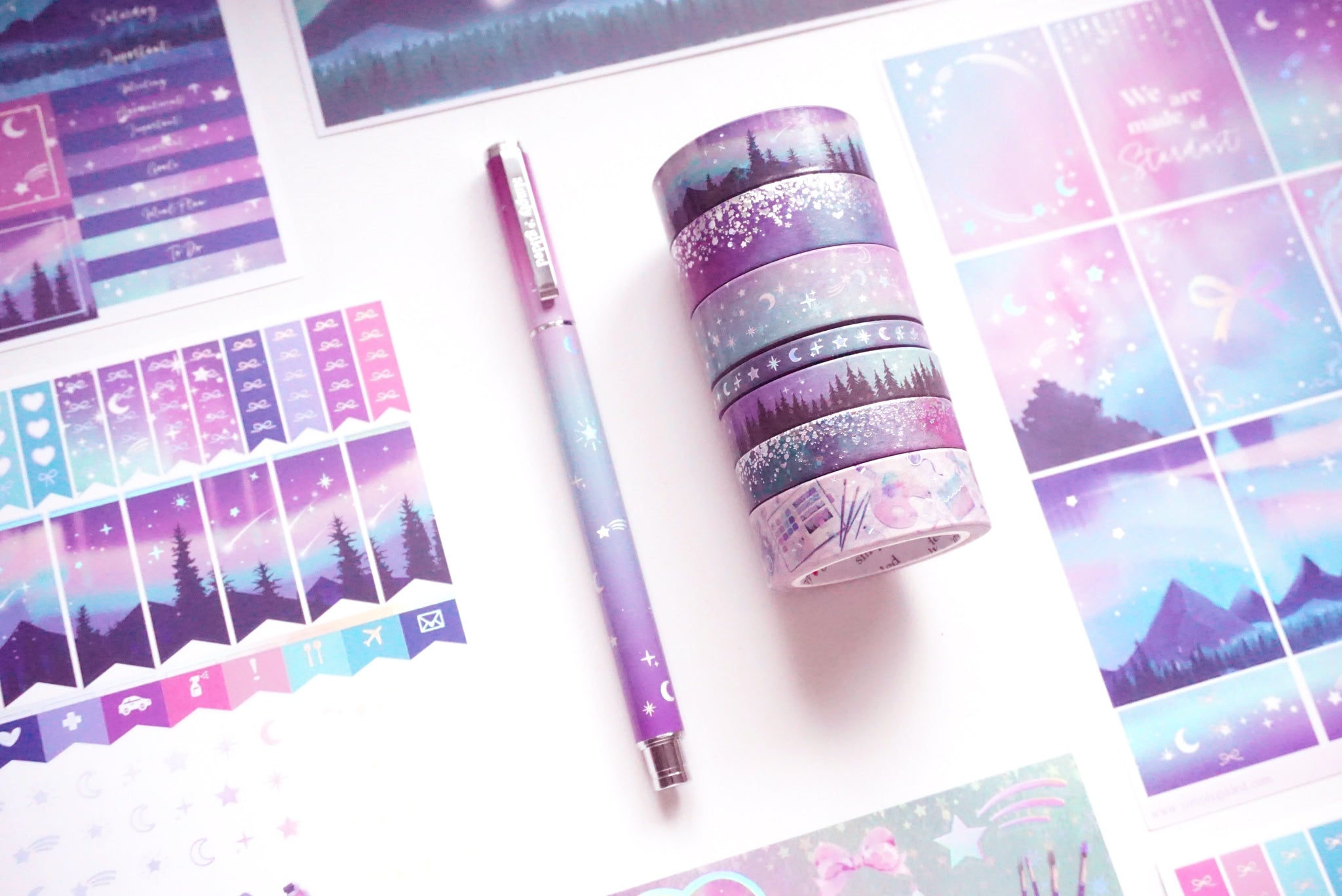 Each kit contains a boxed set of washi tapes in a variety of sizes and finishes, a sticker kit to help decorate your planner alongside special decorative stickers, and a gorgeous pen.