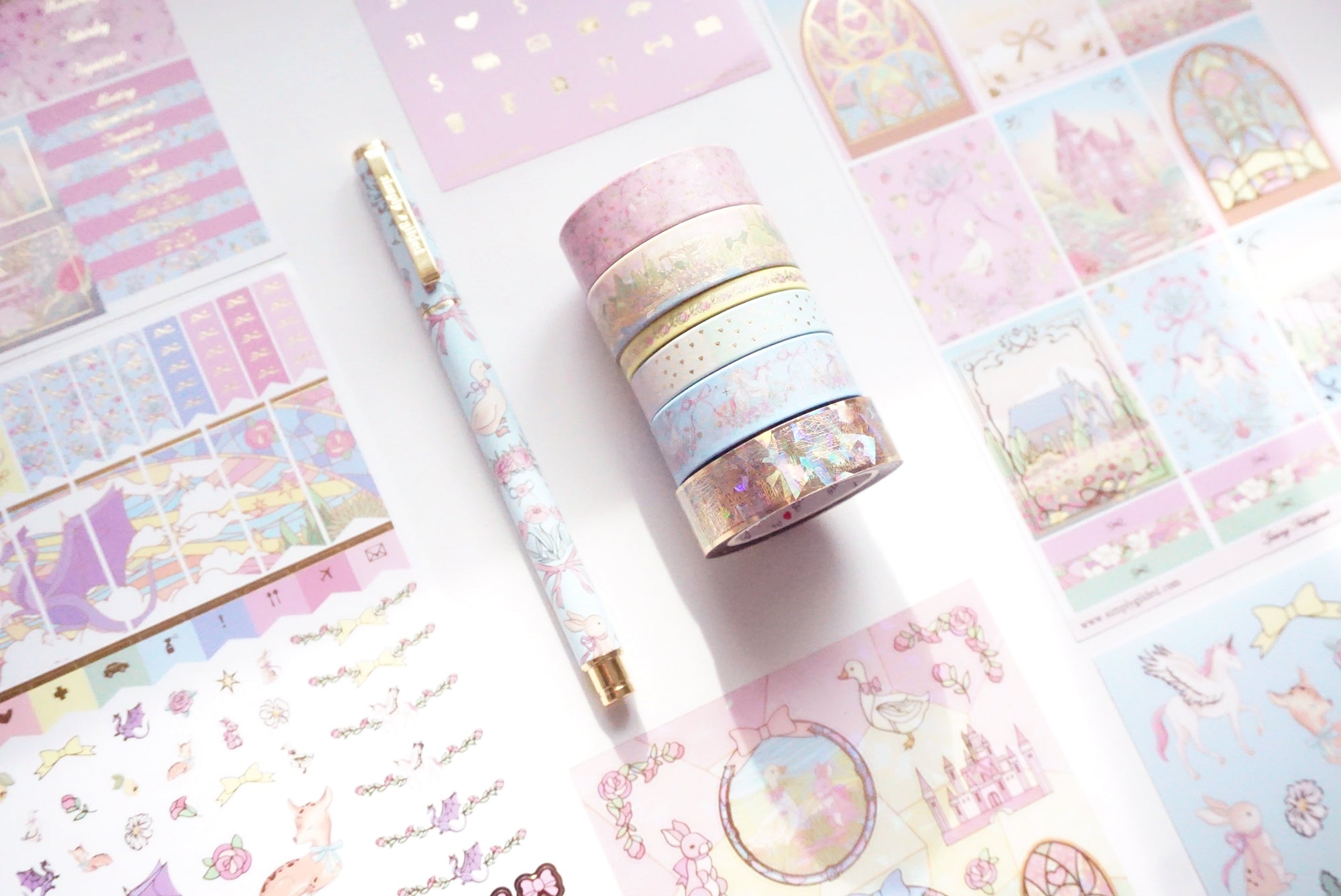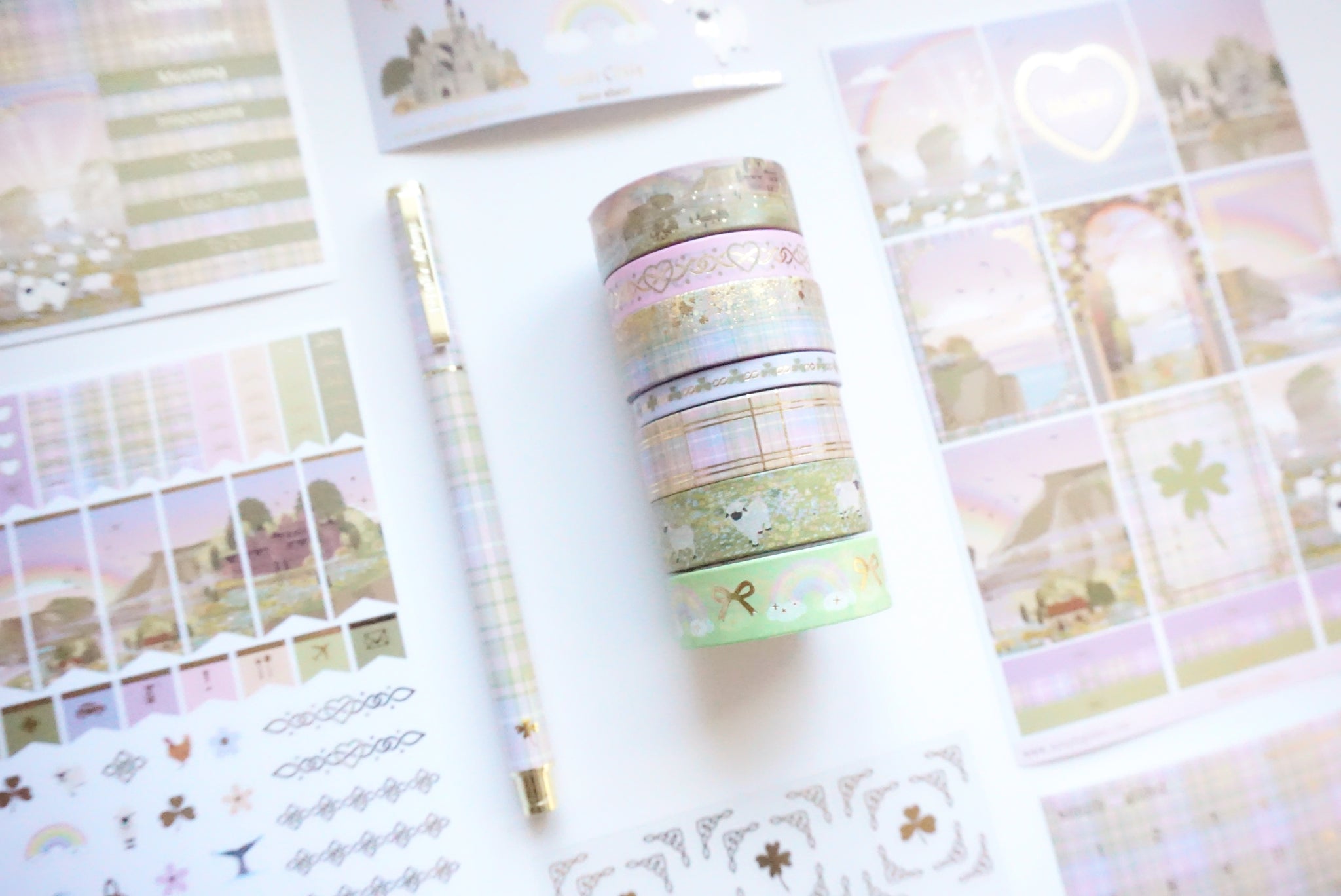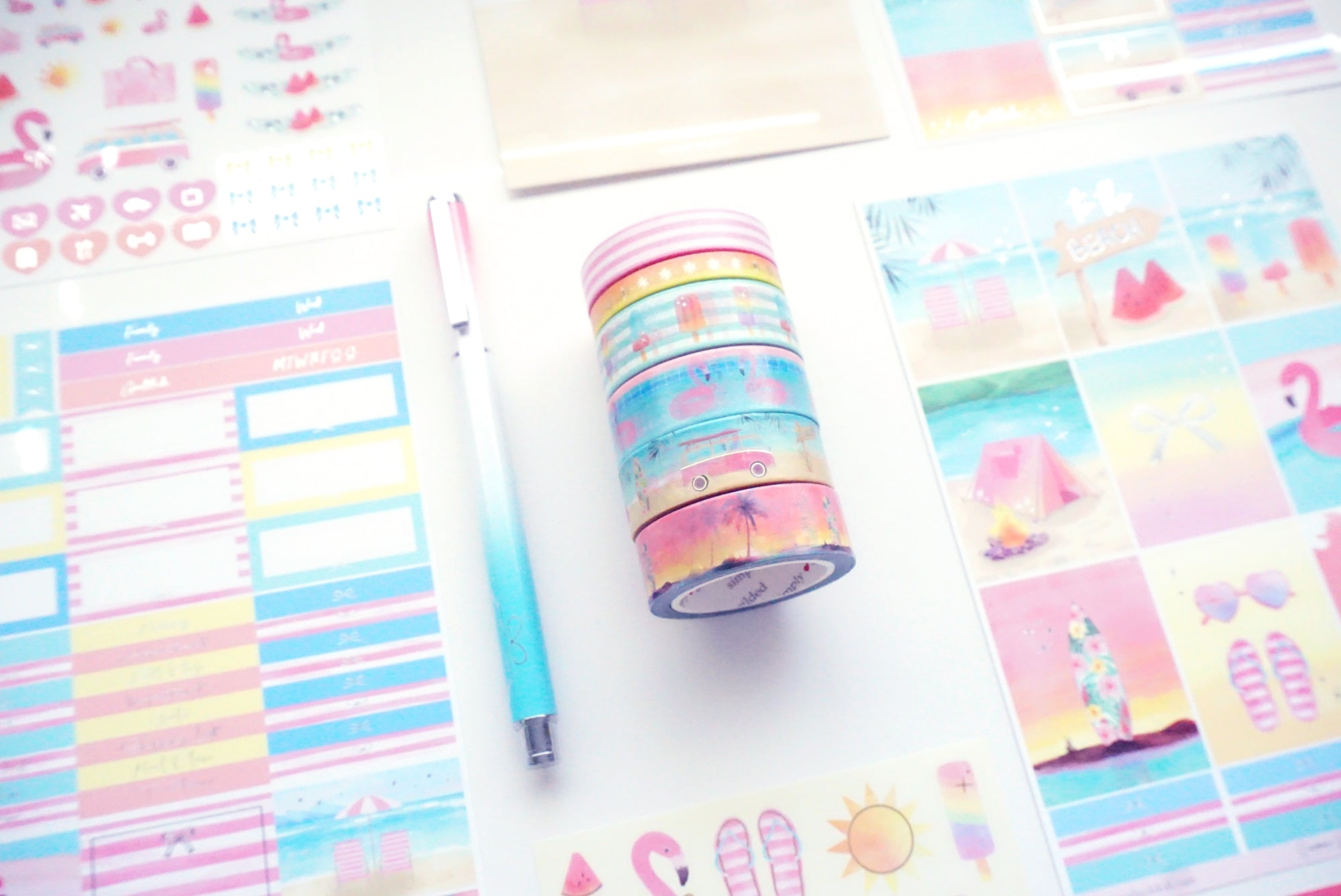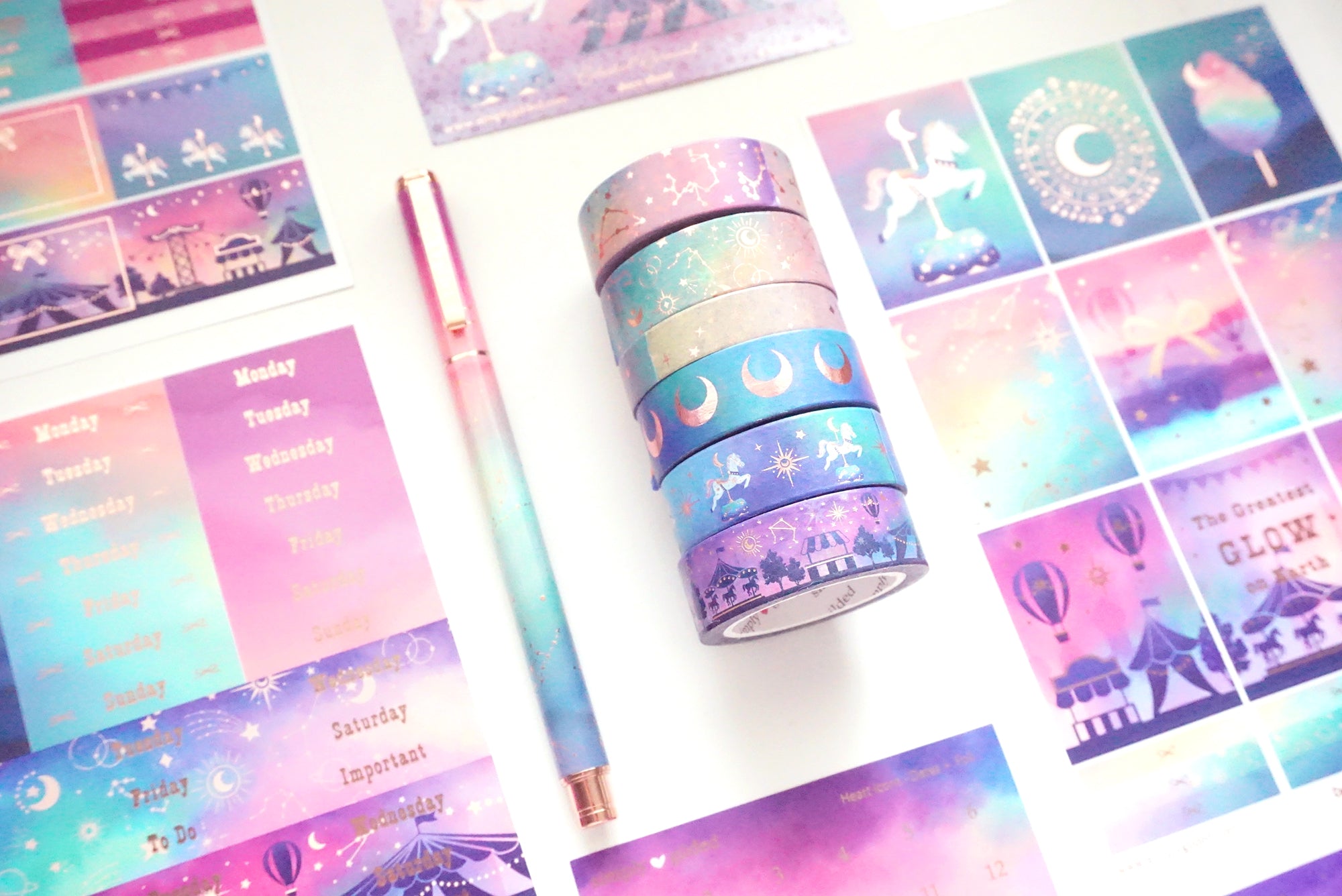 Each kit contains a boxed set of washi tapes in a variety of sizes and finishes, a sticker kit to help decorate your planner alongside special decorative stickers, and a gorgeous pen.
